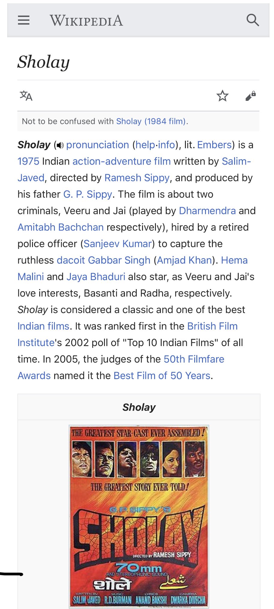 Sholay Wikipedia - This page was cut for reason: